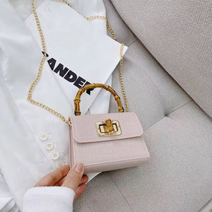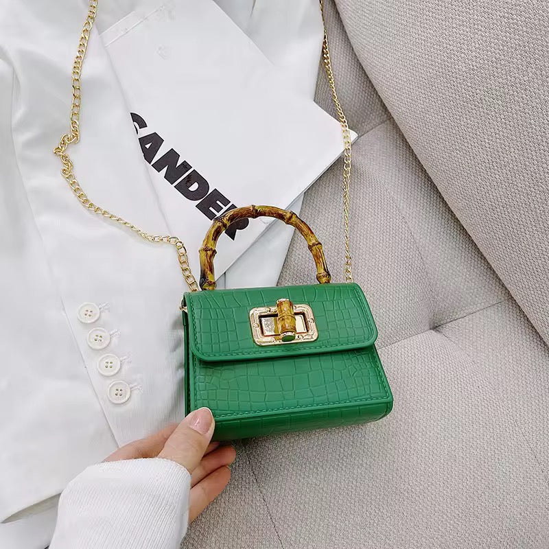 Turn heads with this statement-making mini bag, featuring a luxe bamboo-inspired handle and a chic crocodile-textured finish. Compact yet classy, it’s designed to carry your essentials in style—perfect for brunch dates, evening outings, or adding a pop of color to your everyday look. With its gold-tone chain strap and timeless silhouette, the Bamboo Mini Bag is your go-to blend of elegance and trend.