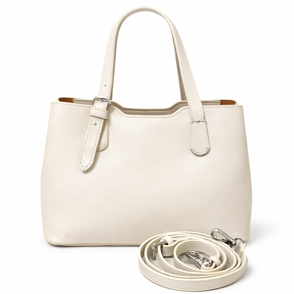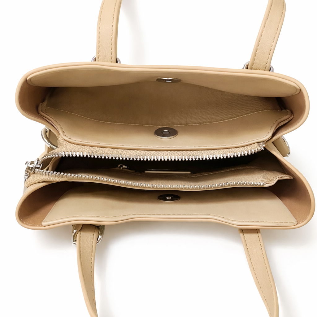 Classic, minimal, and effortlessly chic, this structured handbag Features a smooth leather look finish with dual top handles and detachable shoulder strap for versatile styling. designed with a smart zip-divider interior to keep essentials neatly organized, it's the perfect everyday bag for work, errands, or polished looks with smartly placed compartments to keep everything organized, With versatile carry options and effortless elegance, it’s the perfect balance of style, structure, and everyday functionality.