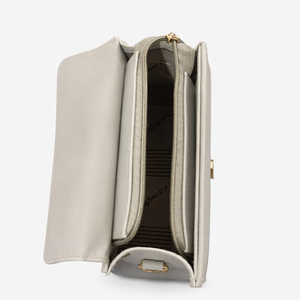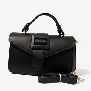 A refined mini handbag crafted with clean lines and a structured silhouette. Finished with a statement buckle, top handle, and detachable crossbody strap—perfect for effortless day-to-night styling.