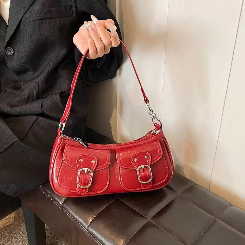 Turn up the heat with the Spice Up Girl bag 🌶️✨. Inspired by the fearless fashion of the early 2000s, this chic shoulder bag is the ultimate it-girl essential. With its sleek silhouette, playful edge, and just the right dose of Y2K glam, it’s made for city strolls, party nights, casual outings and everything in between. A glossy deep-cherry shoulder bag with a compact, curved silhouette. Crafted in a patent-style faux leather, The bag has a zip-top closure and a slim matching shoulder strap with metal clasps. Structured yet playful, it’s designed to sit snugly under the arm and adds a statement pop of color to any outfit.