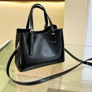 Classic, minimal, and effortlessly chic, this structured handbag Features a smooth leather look finish with dual top handles and detachable shoulder strap for versatile styling. designed with a smart zip-divider interior to keep essentials neatly organized, it's the perfect everyday bag for work, errands, or polished looks with smartly placed compartments to keep everything organized, With versatile carry options and effortless elegance, it’s the perfect balance of style, structure, and everyday functionality.