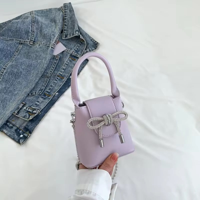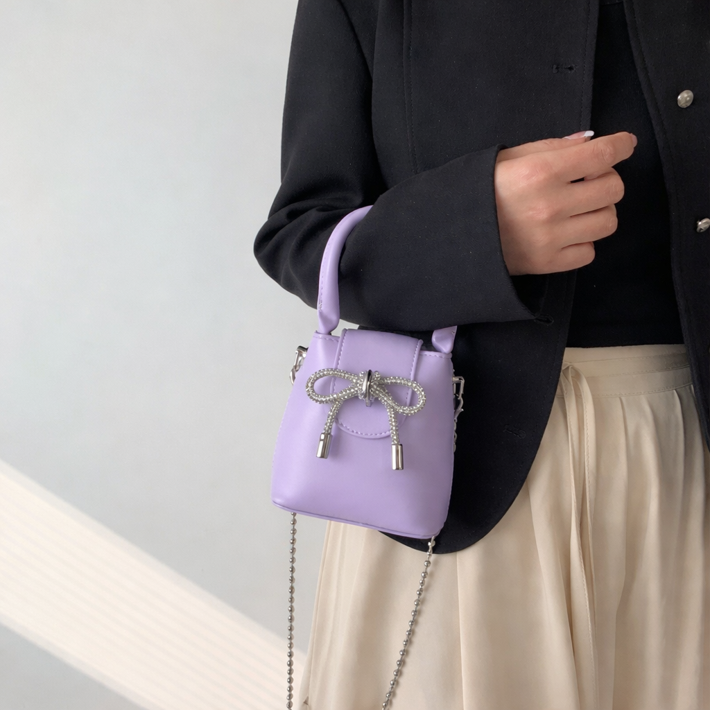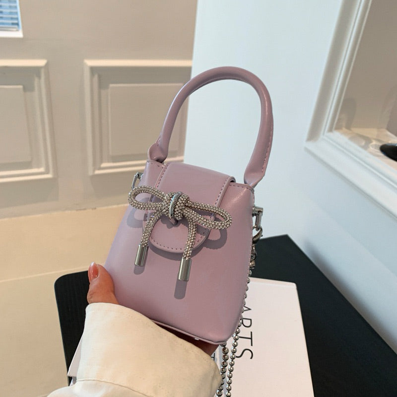 Meet the mini bag that steals the spotlight. Designed with a sparkling crystal bow detail and a sleek structured silhouette, this charming crossbody adds the perfect feminine touch to any outfit. The top handle gives it a polished luxe feel, while the detachable chain strap lets you wear it hands-free. Whether it’s brunch, dinner dates, or special outings, this little beauty brings style without trying too hard.