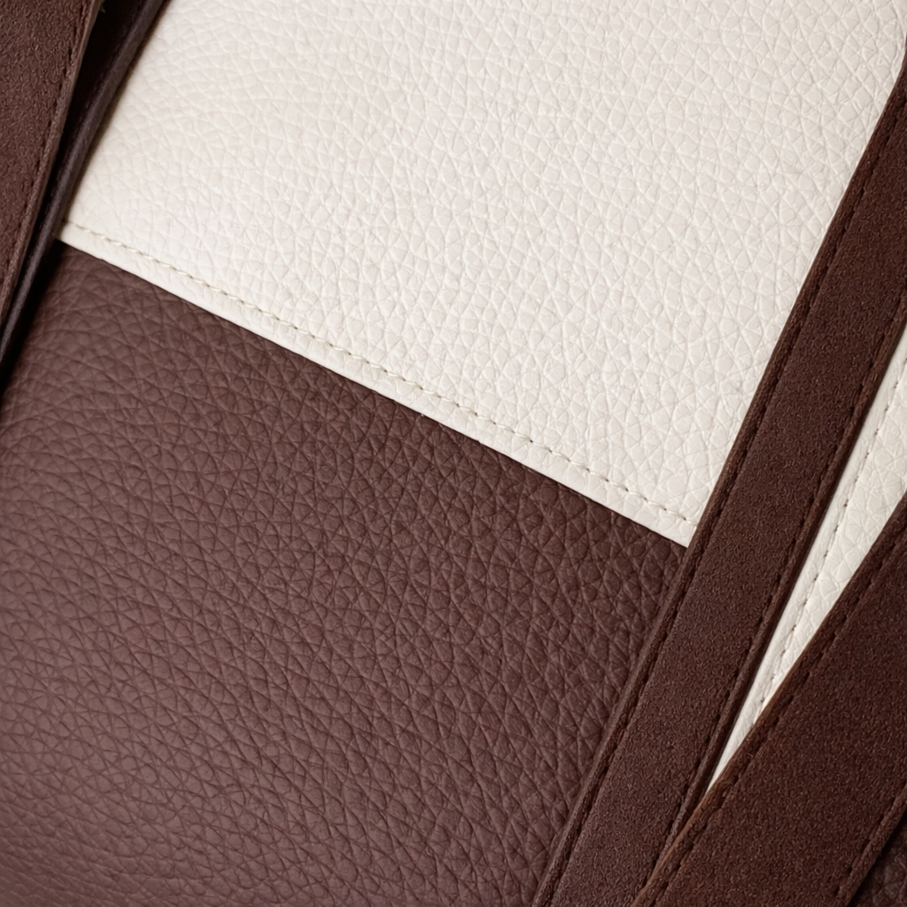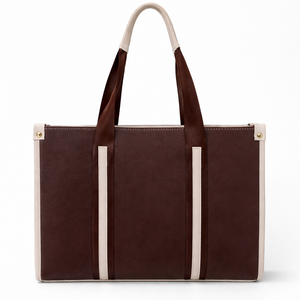 The Metro Tote is a timeless statement piece crafted for the modern woman. With its structured silhouette and luxurious two-tone design in rich caramel brown and ivory, it exudes effortless sophistication. The elongated dual handles ensure comfort, while the spacious interior makes it perfect for work, travel, or everyday chic styling.