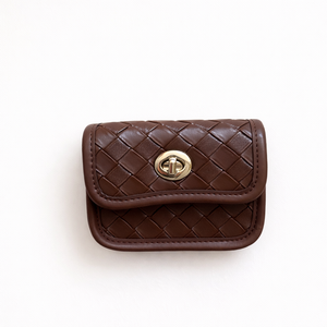 Compact yet functional, this mini bag is designed to carry your essentials with effortless style. The elegant woven texture adds a refined touch, while the adjustable crossbody strap keeps your hands free and comfortable. Finished with a secure turn-lock closure and timeless gold-tone hardware, it’s the perfect everyday piece that transitions seamlessly from day to night.