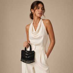 Chic, glamorous, and designed to elevate your party look ✨🤍 This mini party bag is the perfect statement accessory for weddings, festive events, dinners, and celebrations. Featuring sparkling white sequins, delicate fringe tassels, and a compact silhouette, it adds instant elegance to any outfit. Lightweight yet eye-catching, it’s ideal for carrying your essentials in style.